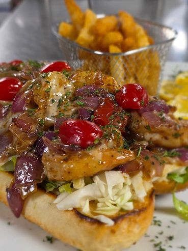 8 Buffalo shrimp, steamed (Buffalo, Old Bay or Boom Boom or Fried. Served with french fries and Hush Puppies.