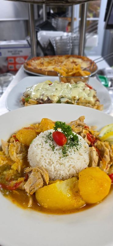Shredded Brisket cooked in a red sauce with onions, peppers and wine roasted garlic. Served with rice, sweet plantains and black beans.